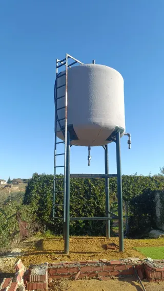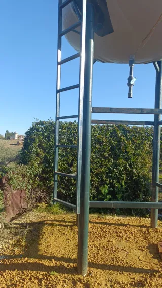Depósito de agua elevado con estructura metálica y escalera de acceso. 5000 litros, está nuevo con solo 1 año de uso .605839514 - Capacidad: [Especificar capacidad si se conoce] - Material del depósito: [Especificar material si se conoce] - Altura aproximada: [Especificar altura si se conoce] - Incluye tuberías de entrada y salida. 605839514