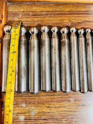Conjunto de herramientas para joyería, conocidas como embutidores. Son ideales para trabajos de detalle y acabado en metales preciosos. - Fabricadas en metal resistente. - Variedad de tamaños y formas para diferentes aplicaciones. - Mango ergonómico para un agarre cómodo.
