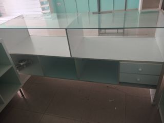 Precioso mostrador con detalles infantiles, en perfecto estado. - Diseño con conejitos y globos. - Encimera de cristal.