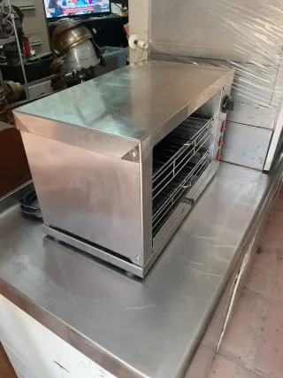 Tostador industrial de la marca ArileX. Ideal para negocios de hostelería. - Construcción en acero inoxidable. - Múltiples rejillas para tostar. - Controles de temperatura y tiempo.