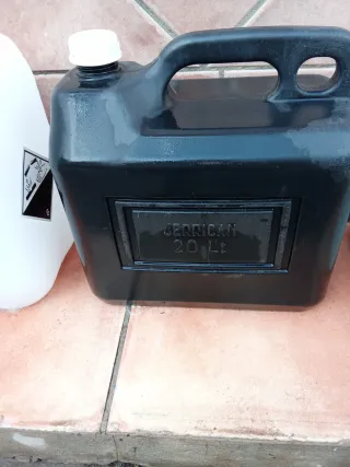 Se venden garrafas de plástico con asa, ideales para almacenar líquidos. - Material: Plástico resistente. - Color: Blanco. - Tapa: Roja.