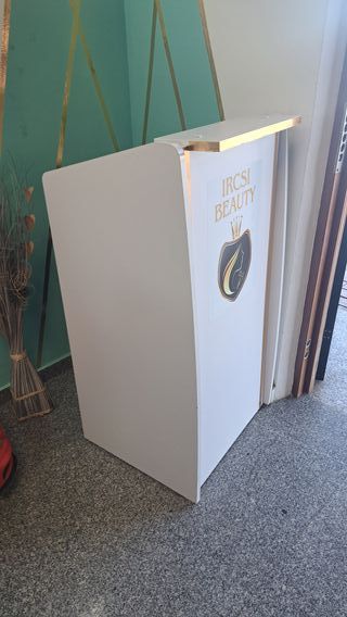 PRODUCTOS DISPONIBLES SÓLO HASTA EL 12 DE ENERO ¡Atención!!! Elegante mostrador de recepción con un diseño moderno y detalles en dorado. Ideal para dar un toque sofisticado a tu negocio. - Color blanco principal. - Ribetes y detalles decorativos en color dorado.