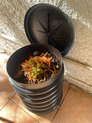 Compostador para lombrices, ideal para crear abono orgánico. Vermicompostador Compostera 5 bandejas Negro + Jardinera | Composta residuos orgánicos, lombrices producen Humus de Lombriz - Fabricado en plástico negro. - Diseño acanalado para ventilación. - Tapa redonda negra con estrella central. - incluye lombrices