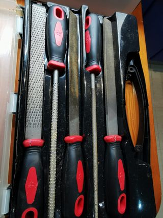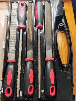 Se vende juego de 5 limas y escofinas con maletín rígido de transporte. Incluye diferentes tipos y granos para madera, metal y trabajos generales de bricolaje. Herramientas usadas, en buen estado funcional, con desgaste normal de uso (ver fotos reales). Mangos ergonómicos, firmes y cómodos. Ideal para: ✔️ Bricolaje en casa ✔️ Carpintería básica ✔️ Taller, garaje o mantenimiento ✔️ Aficionados y manitas Todo organizado en su maletín original, fácil de guardar y transportar. 📦 Opción de envío disponible 📸 Fotos reales del producto 🤝 Entrega en mano o envío a convenir