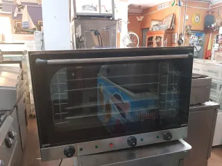 Horno industrial de gran capacidad, ideal para negocios de hostelería. - Puerta de cristal. - Bandejas interiores. - Mandos de control. Medidas bandeja 60x 40 cm Medidas exteriores alto 55cm, ancho 83cm y 70cm de fondo. 220 v , monofasico