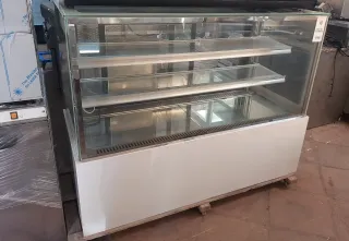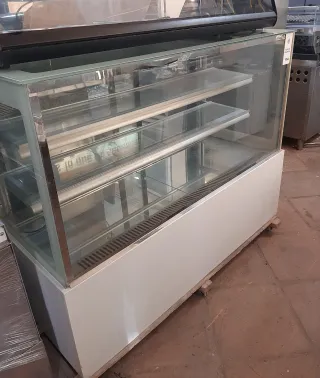 Vitrina expositora refrigerada, ideal para pastelería. - Diseño moderno y elegante. - Estructura de cristal. - Bandejas interiores. Medidas 148cm ancho x 115cm alto y 64cm fondo. Perfecto funcionamiento