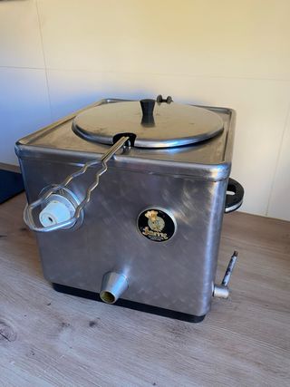 Freidora profesional de la marca Jemi, ideal para negocios de hostelería. - marca: Jemi - Serie: N - 1 cuba - aceite + agua - Fabricada en acero inoxidable. - Diseño compacto y robusto. - 4 litros - la palanca para el vaciado funciona pero es dura # freidora jemy jemi gemi gemy Jemi fryer friggitrice