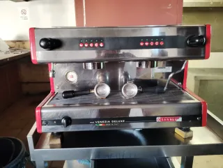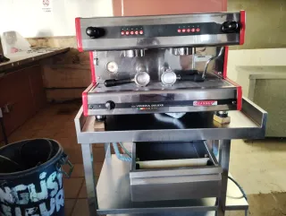 Cafetera industrial San Remo Venezia Deluxe con mesa de acero inoxidable. - Cafetera de dos grupos. - Fabricada en Italia. - Incluye portafiltros.