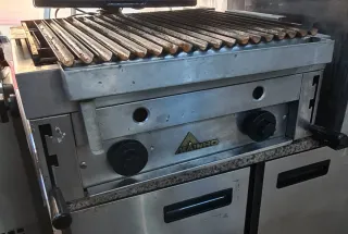 Barbacoa industrial de gas marca Mahino. - Ideal para negocios de hostelería. - Diseño robusto y profesional. - Superficie de cocción amplia.