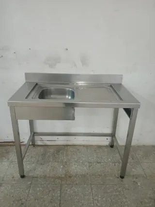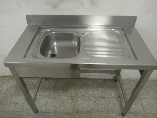 Fregadero de acero inoxidable con bastidor. - Medidas: 118 x 55 cm. - Material: Acero inoxidable.