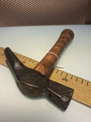 Martillo de carpintero con mango de madera. - Cabeza de metal con cara pulida. - Mango de madera con detalles. - Diseño clásico.