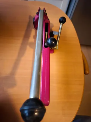 Vendo flejadora manual combinada para fleje de polipropileno (PP) de 13 mm. Es una herramienta industrial "todo en uno" fabricada en acero reforzado, mucho más duradera que los modelos modernos de plástico. Funciones integradas: Tensado: Sistema de trinquete de alta potencia para un ajuste máximo. Sellado (Grapado): Pone y cierra la grapa metálica directamente con la palanca, sin necesidad de pinzas externas. Corte: Incorpora cuchilla para cortar el fleje sobrante automáticamente tras el sellado. Detalles técnicos: Medida específica de 13 mm (grabado de fábrica en el lateral). Estructura metálica pesada que garantiza estabili