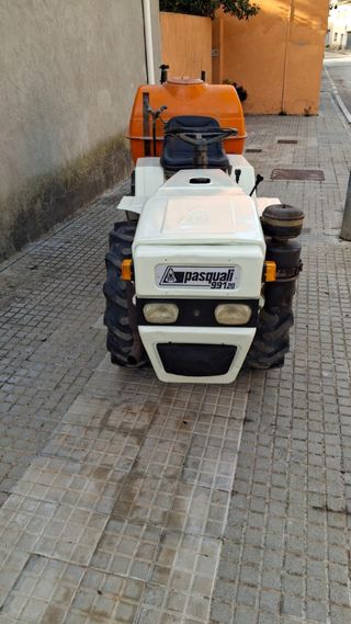Se vende tractor Pasquali, ideal para pequeñas explotaciones. Es un modelo antiguo, con señales de uso visibles en la carrocería. - Tractor pequeño y manejable. - Perfecto para trabajos agrícolas ligeros. - Se encuentra en buen estado general. Tiene varios apero cultivador arado cuba de fumigar rotavator