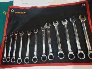 Juego de 12 llaves mixtas con carraca en manta, se vende en 140 euros por Wallapop NO NEGOCIABLE.