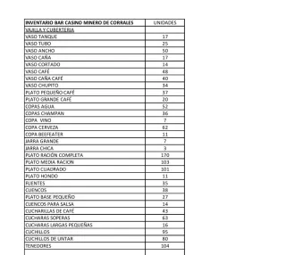 Inventario Bar: Vajilla y Cubertería