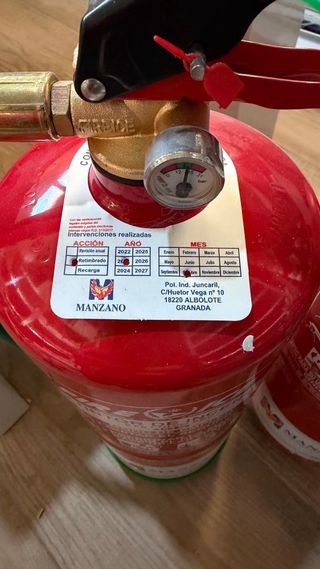 Se venden cuatro extintores de 6kg de polvo ABC. - Marca Zenith y Fire Ice. - Ideales para diferentes tipos de fuego. - Con manguera y manómetro. ***Revisados en Octubre de 2025.**** Los 4 en conjunto 80€ Precio por unidad suelta 25€.
