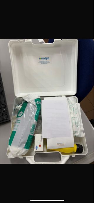 Botiquín de primeros auxilios, ideal para tener en casa o en el coche o en el trabajo - Contiene varios elementos para curas básicas. - Incluye instrucciones y un folleto. - Dispone de un asa para facilitar su transporte. Tengo muchas mas cajas como 10 cajas con el mismo material