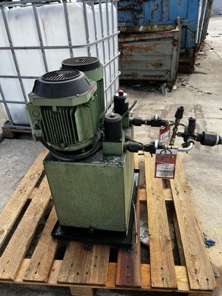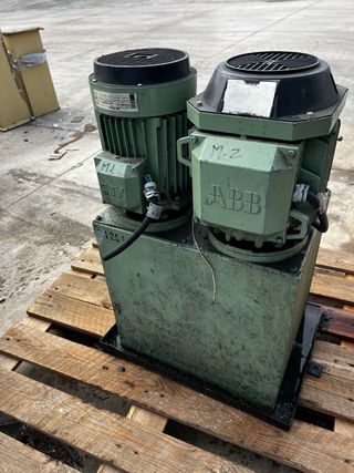 Unidad hidráulica ABB con dos motores. El grupo hidráulico es el componente central de un sistema hidráulico, proporcionando la energía necesaria para accionar cilindros u otros mecanismos - Color verde. - Montada sobre base metálica. - Incluye dos motores ABB, marcados como M.1 y M.2.