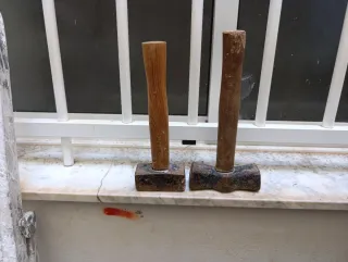 Se venden dos martillos maza con mangos de madera. - Mango de madera. - Cabezal de metal.