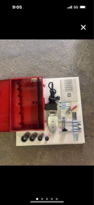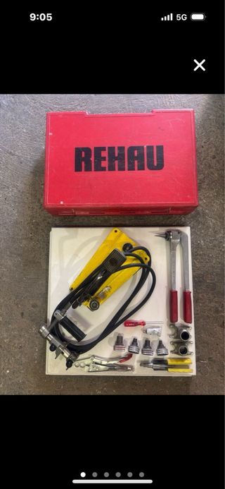 Herramientas profesionales para fontanería. - Prensa hidráulica Rehau. - Soldador para tubos. - Incluye accesorios y maletín.