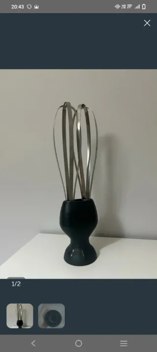 Batidora de mano de color rojo, con un diseño ergonómico y un acabado metálico en la base. - Cuerpo principal de plástico rojo. - Eje de acero inoxidable. - Base protectora de metal. - Función perfectamente y es como nuevo