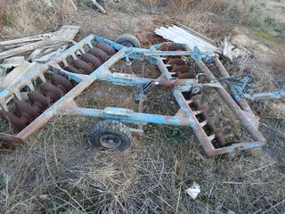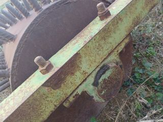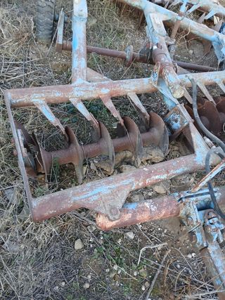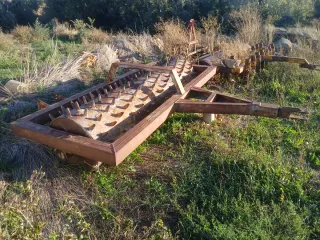 Grada agrícola con un ancho de trabajo de 2,40 metros. - Estructura metálica robusta. - Discos de labranza. - Ruedas para transporte. Atención, en la parte delantera, la mitad de los discos, presentan desgaste. La otra mitad, y el resto, están en buen estado.