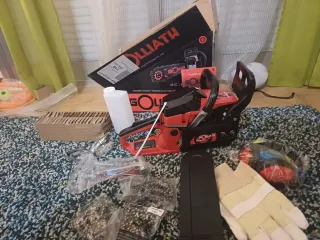 Motosierra de gasolina de la marca Goliath, modelo CH-65cc. Se encuentra sin estrenar. Mando fotos pagina web donde se adquirió machineplanet.net.viene con 3 cadenas protecciones,lima, herramientas montaje y tensado de cadena.espada 50cm - Cilindrada: 65 CC - Potencia: 3.9 HP
