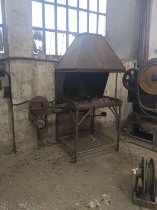 Fragua de forja antigua, ideal para talleres o coleccionistas. Presenta un diseño robusto y clásico. - Estructura metálica. - Campana extractora integrada. - Soporte para herramientas.