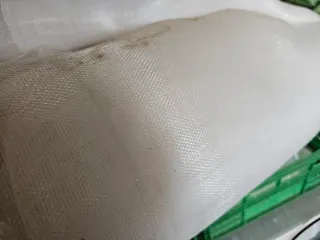 Rollo de malla mosquitera con una densidad de 10x20 hilos por centímetro cuadrado. Ideal para protección contra insectos. - Medidas: 3 metros de ancho por 40-45 metros de largo. - Material: Malla resistente color blanco, utilizada una vez