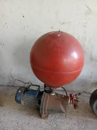Se vende bomba de agua para pozo, con su tanque presurizador. - Bomba de agua. - Tanque presurizador rojo.