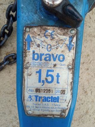 Polipasto de palanca marca Tractel, modelo Bravo de 1.5 toneladas. Cadena de 3 metro y ganchos. Posibilidad de entrega en mano en Huesca.