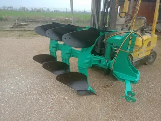 Arado de cuatro cuerpos de la marca Gregory Benson. El cuarto cuerpo está desmontado por el motivo que se usa con un tractor más pequeño