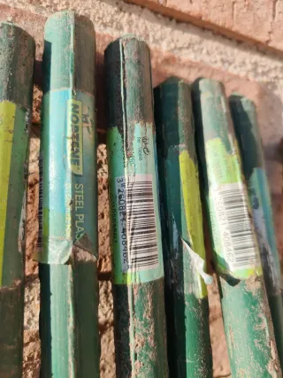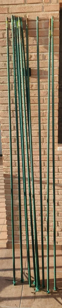 Lote de 10 barras metálicas para tutores de plantas. Son resistentes y flexibles. 20€ el lote - Marca: NORZENE - Material: STEEL PLAS (metal cubierto de plástico) - Medidas: 16mm x 2,10m
