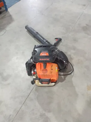 Sopladora de mochila con motor de gasolina. - Color naranja y negro. - Tubo de soplado curvo. - Motor de 2T 75,6CC