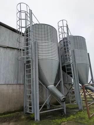 Pack 2 silos galvanizados para pienso – 10.000 kg cada uno. → oferta 1.100 € los dos. Por separado (600 € unidad). Ideales para explotación ganadera. -En Extremadura