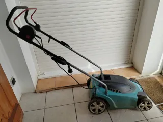Cortacésped eléctrico Makita en color verde y negro. - Ruedas para facilitar el movimiento. - Asa plegable para un almacenamiento compacto.