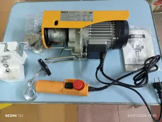 Elevador eléctrico de la marca Ayerbe, modelo AY-200/400. - Capacidad: 200/400 kg. - Elevación: 12/6 m. - Tensión: 230 V. / 50 Hz. - Potencia: 900 W. -Nuevo a estrenar.