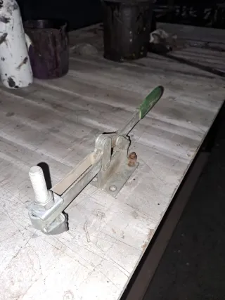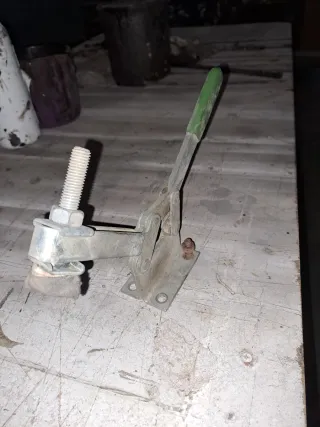 4 Herramienta de sujeción plantilla para tupi. - Mecanismo de palanca. - Mango con recubrimiento verde. - gato metálico para plantilla montaje.