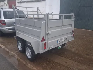 Remolque basculante de 210x130x72 cm con dos ejes y freno.. NUEVO DE FABRICA, EJES DE 1000K CADA UNO - Medidas CAJA 210 cm de largo, 130 cm de ancho y 72 cm de alto. MAS 1 BARANDILLA Y PORTATABLON DELANTERO - Dos ejes para mayor estabilidad y capacidad de carga. - Sistema de freno para una mayor seguridad. - Mecanismo basculante para facilitar la carga y descarga.