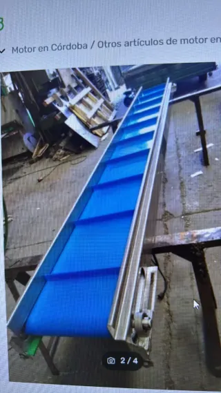 Cinta transportadora de 16 metros de largo y 600 mm de ancho con diseño nervado. - Banda nervada. de Ocasión - Longitud: 16 metros. - Ancho: 600 mm. Bastidor tubular Motor eléctrico 4 Cv totalmente revisada y pintada Protección de seguridad en cabeza y cola en chapa pegada tolvín trasero Precio ........... 5.985'00€ Nota : hacemos envíos