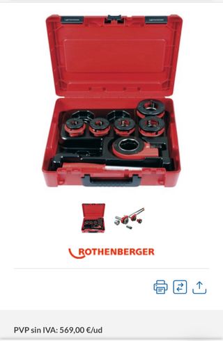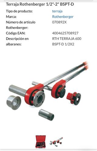 Maletín de terrajas Rothenberger. - Incluye juego de terrajas desde 1/2 a 2” - Maletín rojo de plástico.