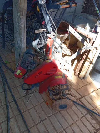 Motocultor de gasolina en color rojo, modelo HS-008. - Diseño compacto y robusto. - Ruedas para facilitar el transporte. A falta de una puesta a punto el tractor funciona perfectamente vendo por la compra de uno más grande