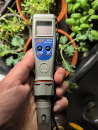 Medidor de pH Adwa AD11. Siempre mantenido en líquido, recién calibrado (4.01 y 7.01), listo para utilizar. Se incluye sobre de 7.01