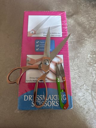 Juego de tijeras de costura de alta calidad. - Cuchillas de acero inoxidable ultra afiladas. - Mango ergonómico para mayor comodidad. - Diseño elegante en color cobre.