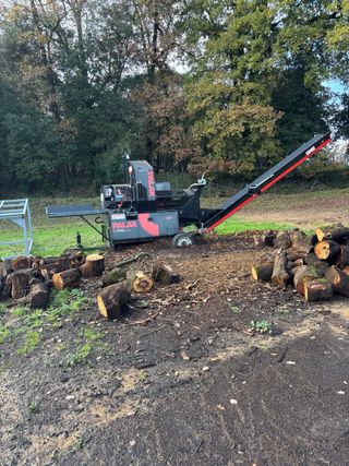 Procesadora de leña Palax C.750 pro en buen estado. Tiene 3 años de uso. El disco de cortar es nuevo, solo ha funcionado 1 hora. Estelladora reforzada. Tambien tiene enganche y ruedas. Para funcionar puede ir con toma de fuerza o electricidad. - Modelo C.750 pro. - Marca Palax.
