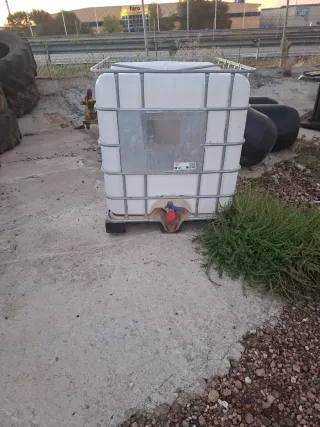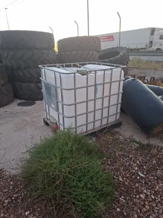 Se venden varios depósitos de agua usados. Están en buen estado, aunque muestran señales de uso. - 2 depósitos IBC de plástico negro, usados pero en buenas condiciones. - 3 tanques de plástico blanco con estructura metálica, usados pero en buenas condiciones. Preguntar precios
