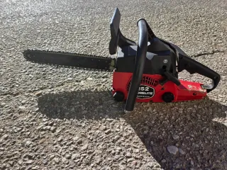 Motosierra Homelite modelo 252. Funciona perfectamente 2 cadenas Pesa 6,5 kg - Color rojo y negro. - Incluye funda protectora para la espada.