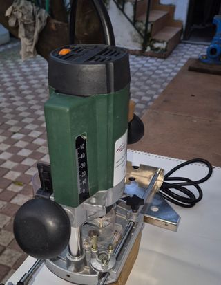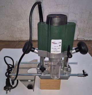 Fresadora de superficie Technipro R31 en buen estado. - Modelo: R31 - Voltaje: 230V - Frecuencia: 50Hz - Potencia: 900W - Diámetro de pinza: 6 y 8 mm - Velocidad: 11500-28500 rpm