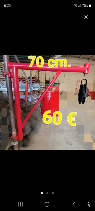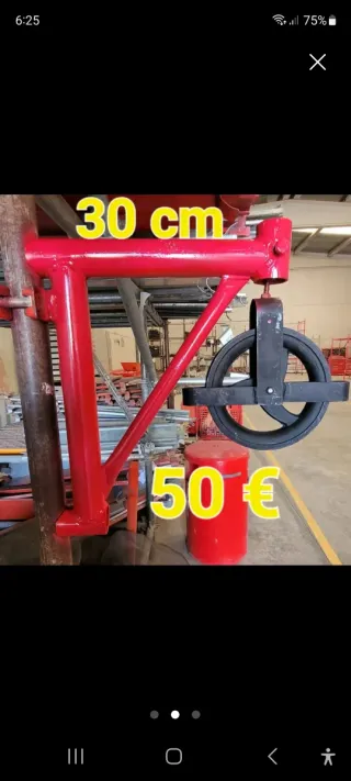 Garrucha de color rojo con soporte y polea nueva. - Medida aproximada de 70 cm. y 30 cm. Abtenerse de hacer contra ofertas.
