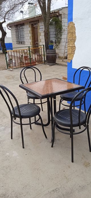 3 juegos de sillas y mesas hosteleria,compuesto de 4 sillas y 1 mesa cada juego medidas de las mesas 70x70 cm cada lado y altura de 74 cm. 80€ cada juego NO envio